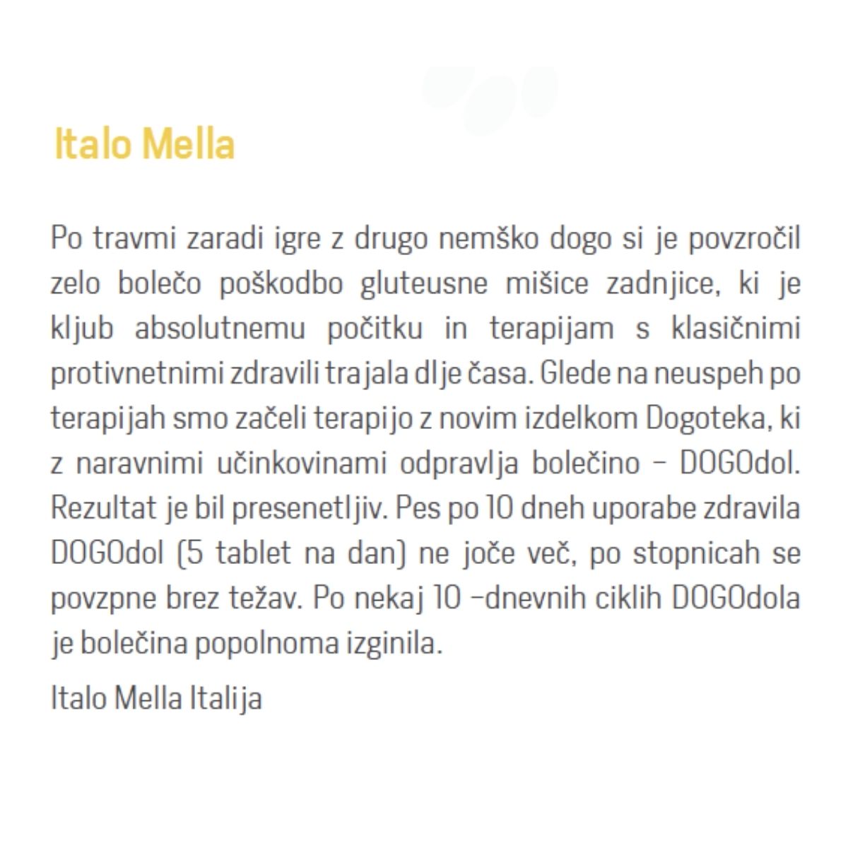 Da povem svojo izkušnjo: imam hrta, ki zelo rad divja in se na žalost tudi hitro kaj poškoduje. Ko se je prvič poškodoval in bil operiran zaradi petega nohta smo okrevanje prestali na star način, nekaj dni zdravila, preveze itd., se je kar vleklo vse skupaj.. Potem pa se je to zgodilo še enkrat in sem zasledila Dogodol, ko sem raziskovala po internetu kako bi mu lahko še kaj olajšala. Razlika o samem okrevanju in počutju mojega hrtka je bila v drugo ogromna!! Tako, da iz srca priporočam, jaz ga imam zdaj vedno na zalogi, tudi za kakšno šepanje in ko je potreben počitek in gre vse hitreje.