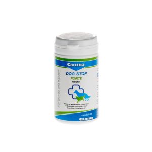 Prehransko dopolnilo Dog Stop Forte ščiti goneče psičke ali mačke pred vsiljivimi samci. Kot stranski učinek zmanjšuje tudi zadah in neprijeten vonj dlake. Temelji samo na naravnih sestavinah, aktivna sestavina je klorofil. Psico v času gonitve nadlegujejo psi, ki ji povsod sledijo, lahko pa celo pride do neželenega naraščaja, zato morajo lastniki zaščititi svojo psičko. Dišavne snovi, ki jih samice izločajo preko seča, privabljajo samce. Psica je zavita v “oblak erotičnih vonjav” in tako pušča za seboj jasne znake, ki privlačijo samce. Tablete Dog Stop Forte lahko na enostaven način rešijo ta neprijeten problem. Če damo psici/mački takoj na začetku obdobja gonitve Dog Stop Forte, je samci v tem času ne bodo nadlegovali.