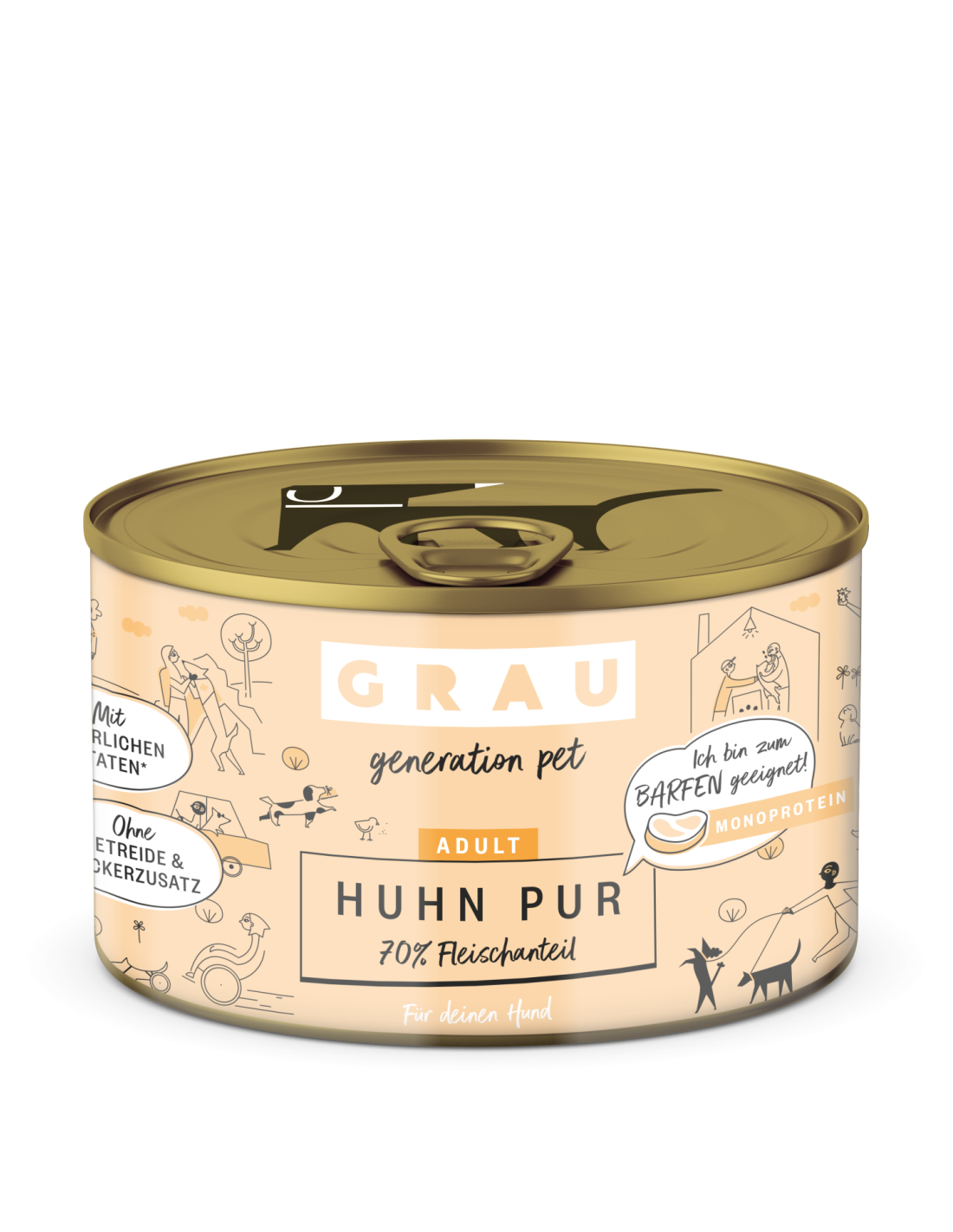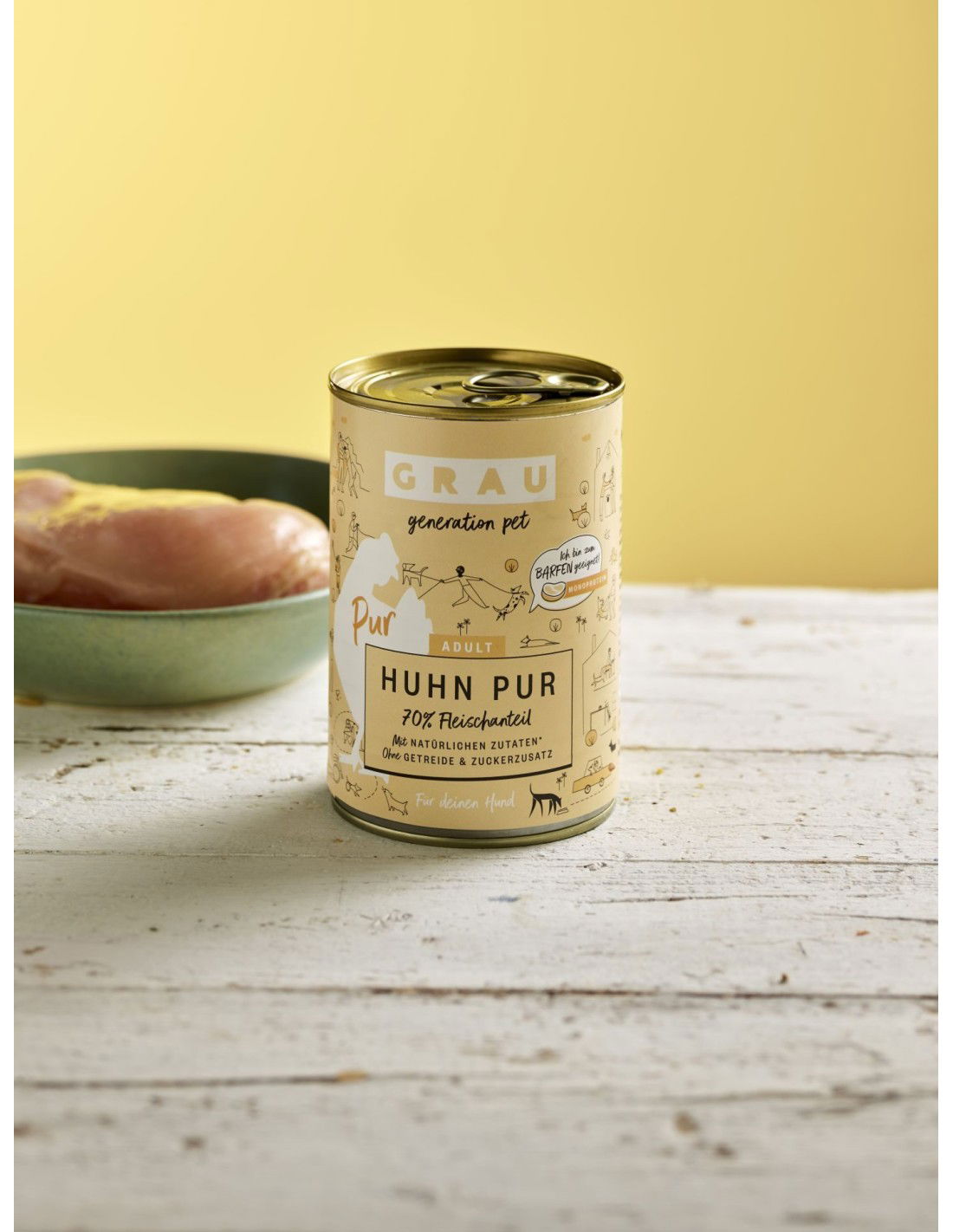Sestava: 70% piščanca (piščančja srca, piščančje meso, piščančja jetra, piščančji želodčki, piščančji vratovi, piščančja maščoba), 28,8% juhe, 1% mineralov, 0,2% lanenega olja.