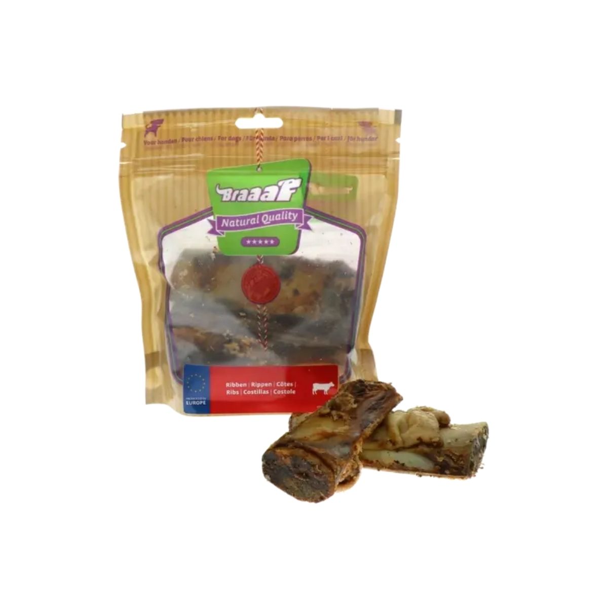 Goveja rebra so 100% naraven prigrizek, ki psa za dlje časa zaposli.Hkrati pa si pes z grizenjem čisti zobe in spodbuja prekrvavljenost dlesni. Grizenje je naravno vedenje psov, s katerim se zaposlijo, umirjajo in utrudijo. Posušena kost je krasen vir beljakovin, fosforja in kalcija.