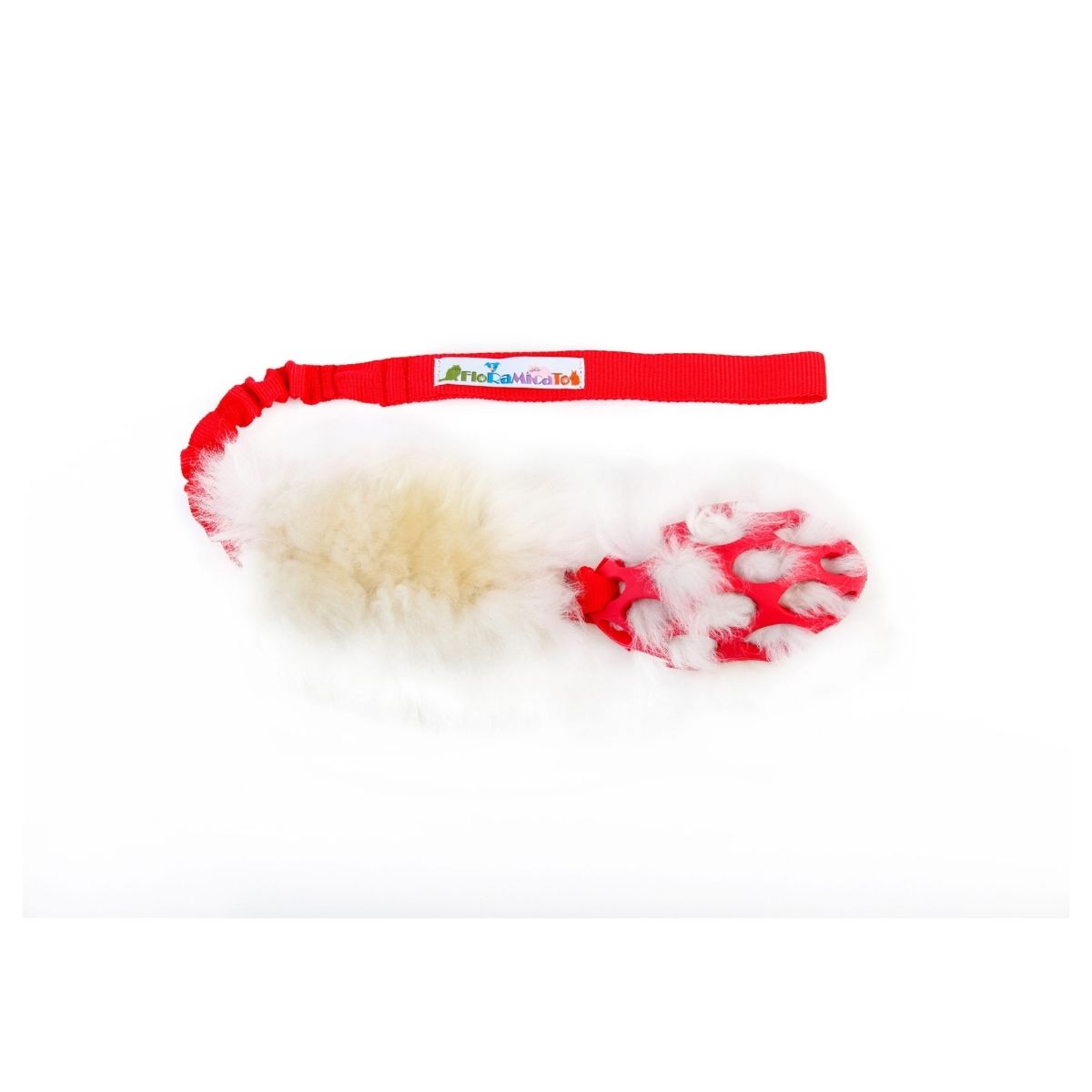 Trpežna motivacijska igrača znamke Floramicato z naravno ovčjo volno ter gumijasim grizalom. S to igračo boste lahko spodbudili vsakega psa za igro ali celo delo. Ker je nežna do pasjih zob je primerna tudi za mladičke. Vonj po ovčji volni pse še dodatno motivira.