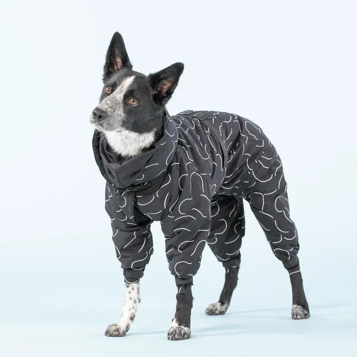 Nepremočljiv pasji kombinezon s toplo podlogo, ki ga je enostavno slačiti in oblačiti. Kaj boljšega si lahko želimo skrbniki psa, ki se ne mara oblačiti a ga zebe?