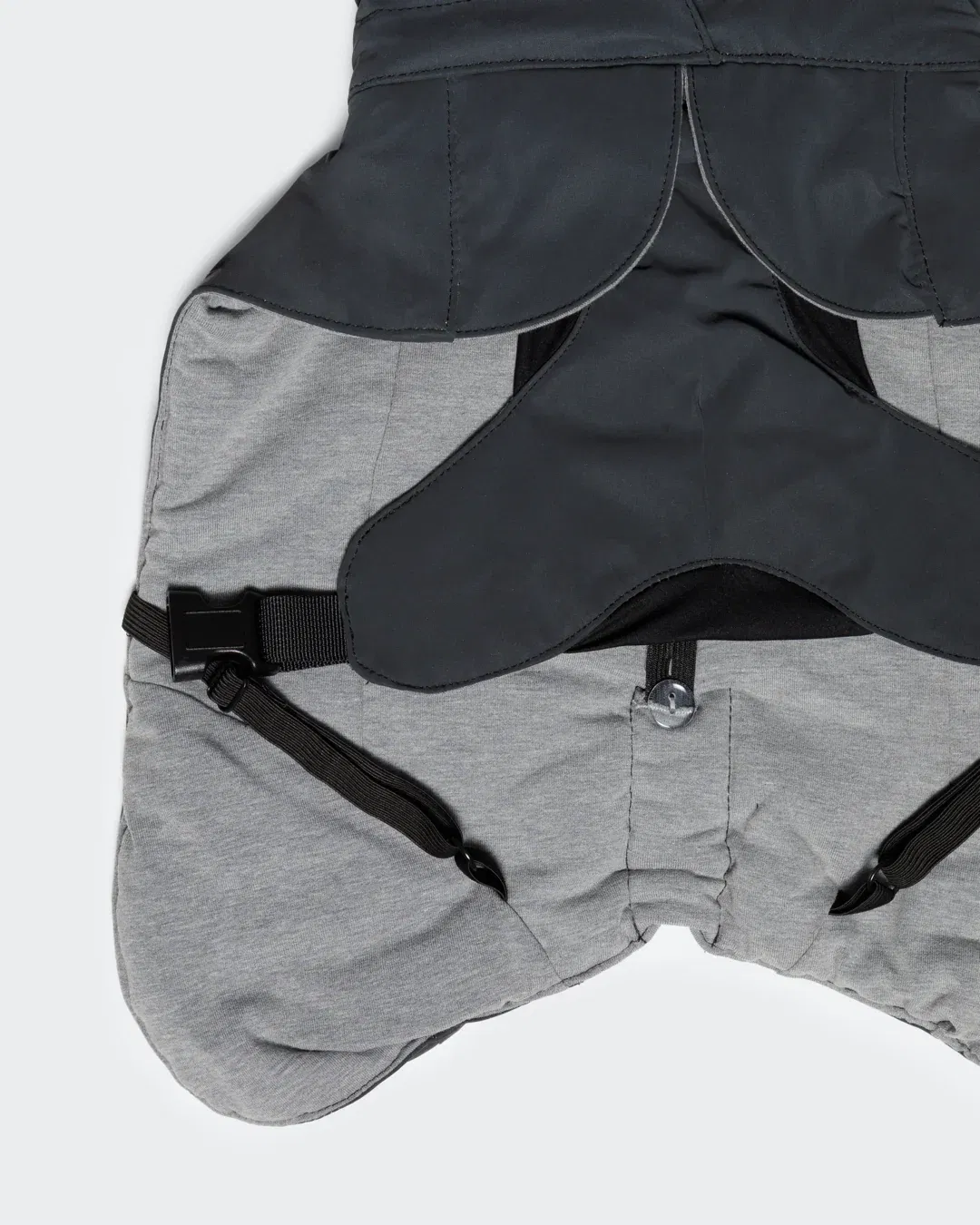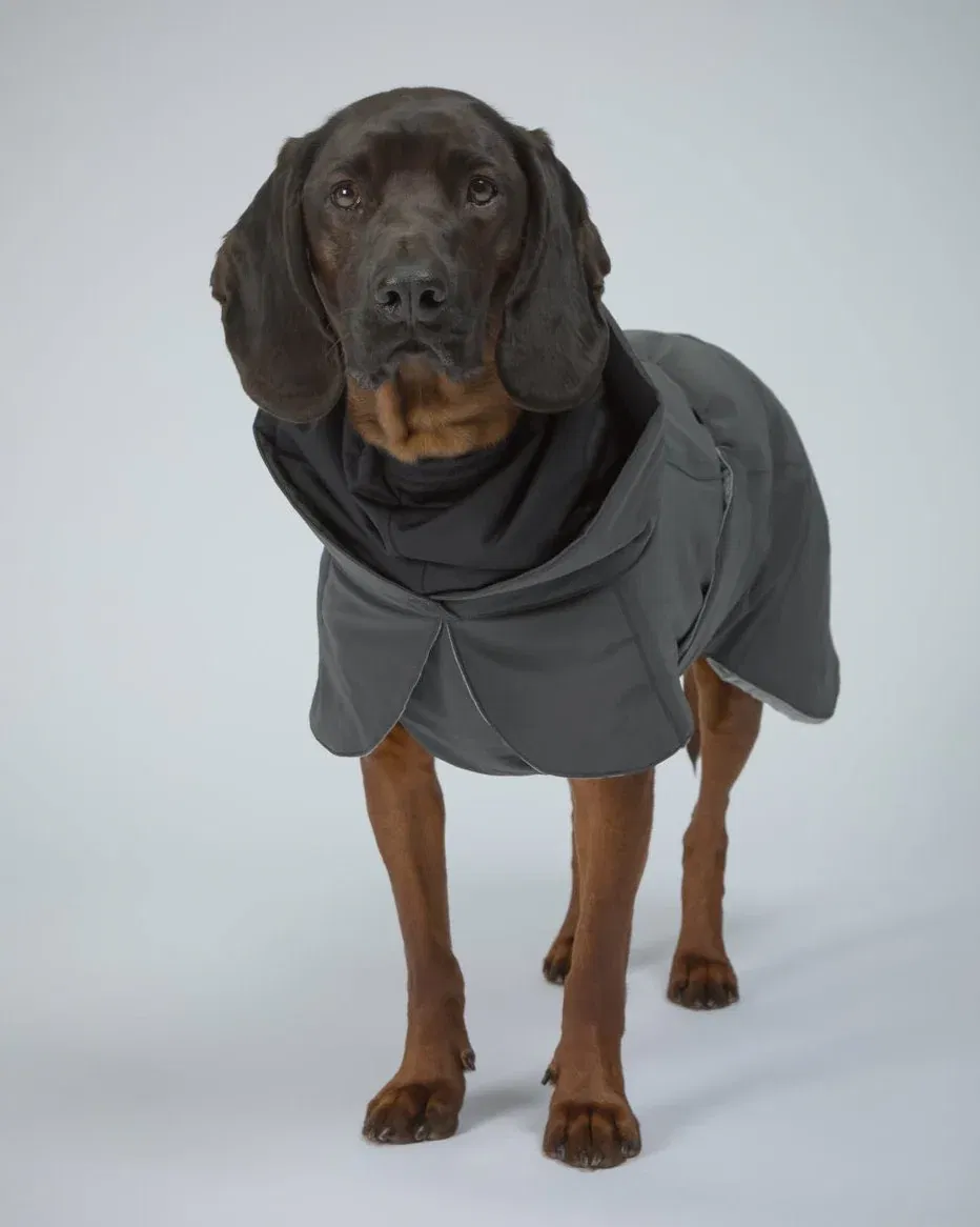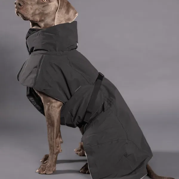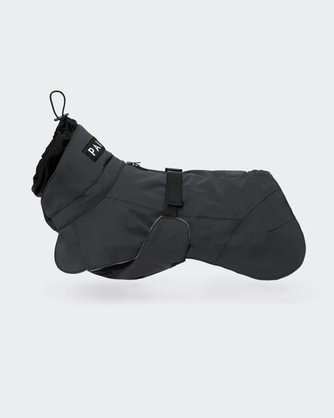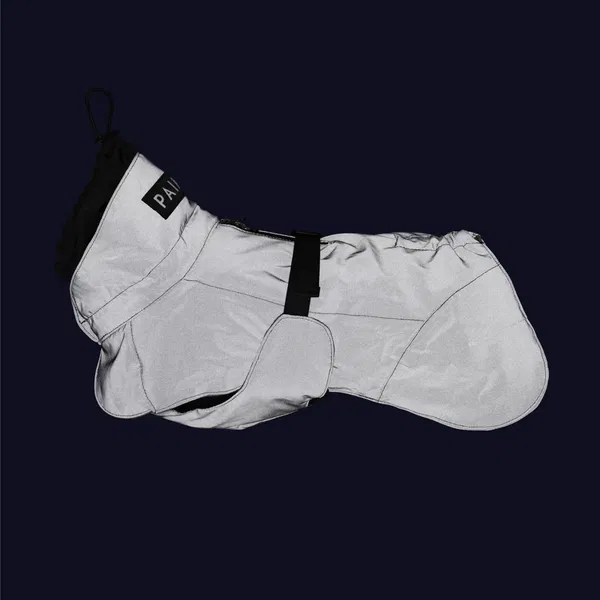 Ta zimski plašč za pse je izdelan iz 100 % vodoodporne tkanine, je topel, šivi pa so lepljeni, zato kuža ostane suh in mu je ob nošnji udobno. Površina materiala je v celoti odsevna, zato omogoča dobro vidnost psa v avtomobilskih žarometih.