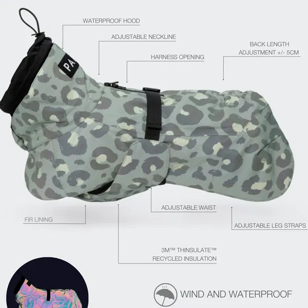 PAIKKA odsevni zimski plašč za pse v zelenem odtenku divjega leoparda