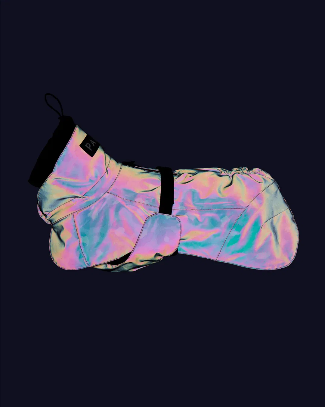 - Odsevni material z mavričnim učinkom: vaša pasja prijateljica bo med večernimi sprehodi varna in vidna z vsakim korakom.
