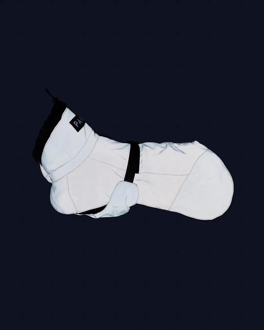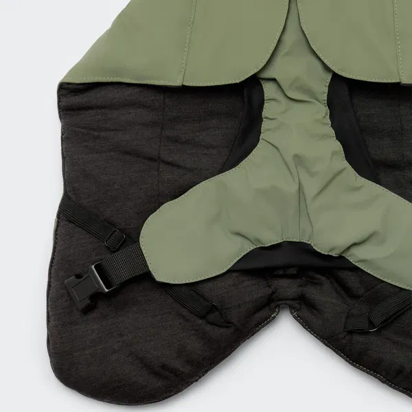 Za dodatno stabilnost ima plašč tudi trakove za zadnje noge, ki poskrbijo, da plašč ostane na mestu tudi pri hitrejšem gibanju ali vetru.