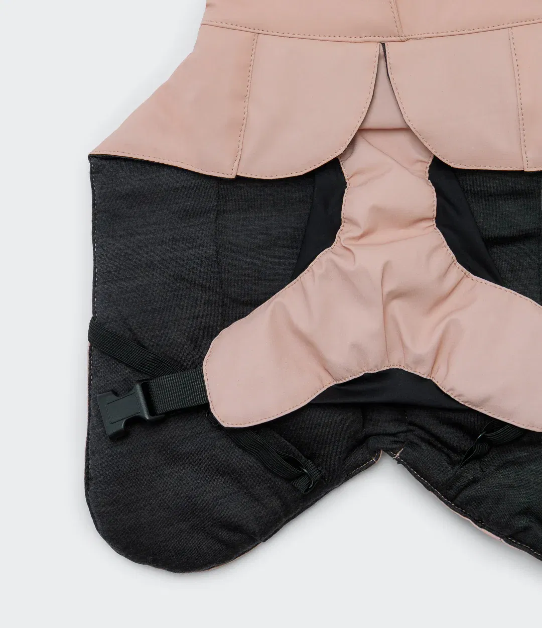 Za dodatno stabilnost ima plašč tudi trakove za zadnje noge, ki poskrbijo, da plašč ostane na mestu tudi pri hitrejšem gibanju ali vetru.