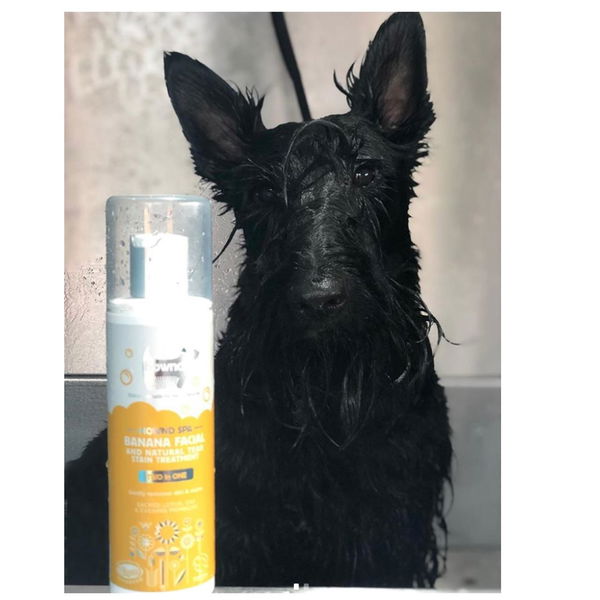 Odstranjevalec madežev Banana Facial je bil zasnovan posebej za nežno odstranjevanje umazanije ter obarvanosti dlake. Še posebej ga priporočamo za odstranjevanje madežev s solznih kanalov. Odstranjevalec ima pH uravnoteženo formulo, ki s pomočjo indijskega lotosa, svetlina, ginsenga in ovsa čisti in neguje dlako. Gre za vegansko alternativo keratina, ki spodbuja rast dlake. In kaj je najboljši del? Noro diši po bananah!