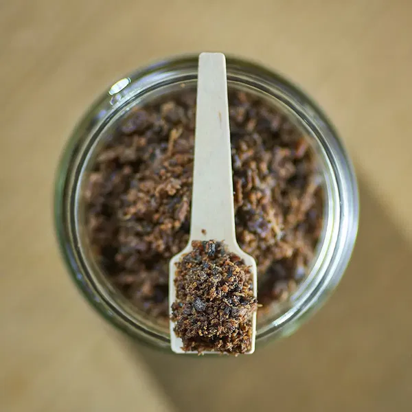 - Praktična in trajnostna embalaža - Vključuje leseno žličko in steklen kozarec za svežino in enostavno doziranje.