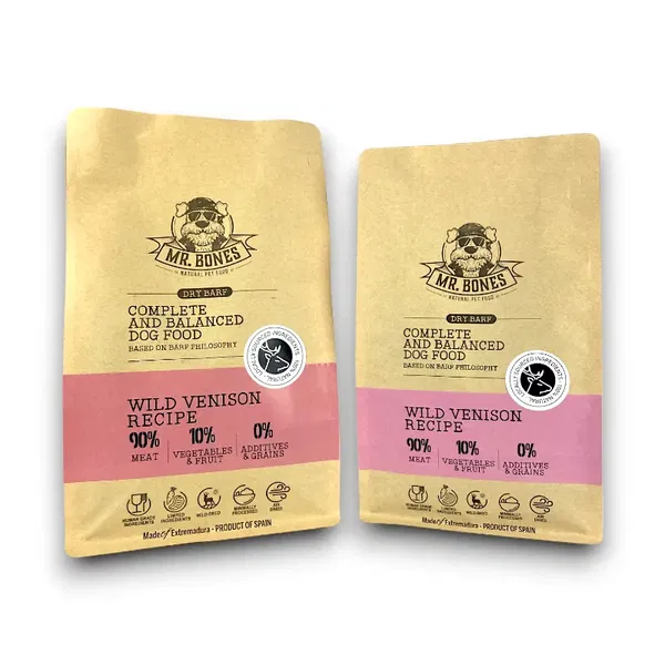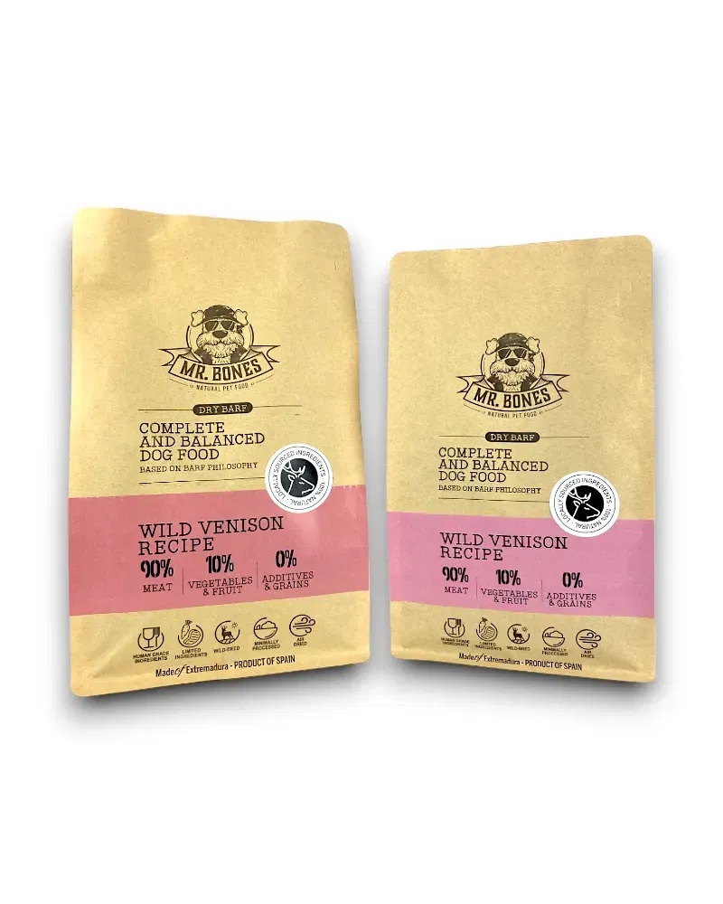 Sušen BARF Divji jelen (divjačina), znamke Mr. Bones je 100% naravna, na zraku sušena hrana za pse, zasnovana po filozofiji BARF. Gre za visoko kakovostno hrano, ki vašemu psu zagotavlja optimalno prehrano.