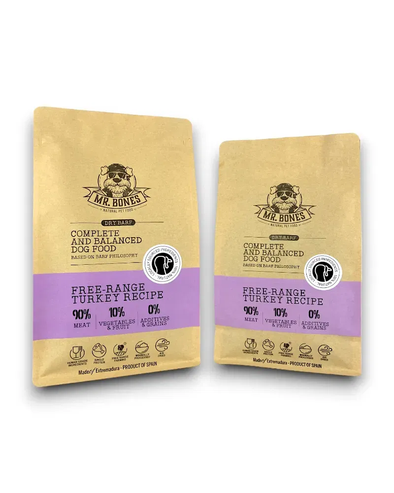 Sušen BARF Puran, znamke Mr. Bones je 100% naravna, na zraku sušena hrana za pse, zasnovana po filozofiji BARF.