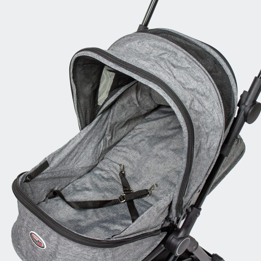 Voziček je zasnovan za mestno vožnjo. Zahvaljujoč 3-stopenjskemu sistemu zlaganja, voziček lahko enostavno zložite (z enim potegom) ter shranite v avto. Kljub temu, da ne zasede veliko prostora, to nikakor ne vpliva na udobje psa med vožnjo ali počitkom na kavi. Primeren je za pse, ki tehtajo kar do 11 kg.