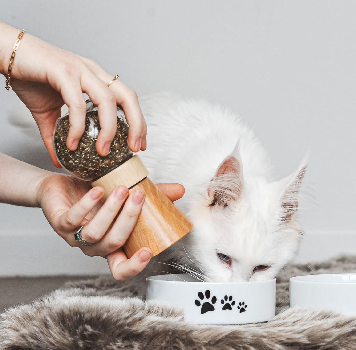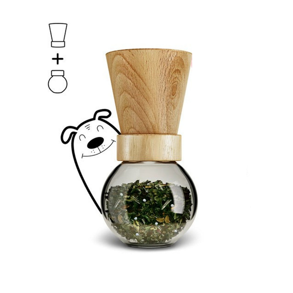Zaradi priročne oblike je primeren za posipanje po vseh vrstah hrane: briketi, hladnostiskani briketi, barf, surova hrana, konzervirana hrana, ... Malo družinsko podjetje iz Montpeillera Truffe & Moustache je tudi mlinčke izdelalo v Franciji, ne vsebujejo plastike, so 100% reciklabilni, tako lesen ročaj, kot steklo in keramični mlinček so narejeni v Franciji.